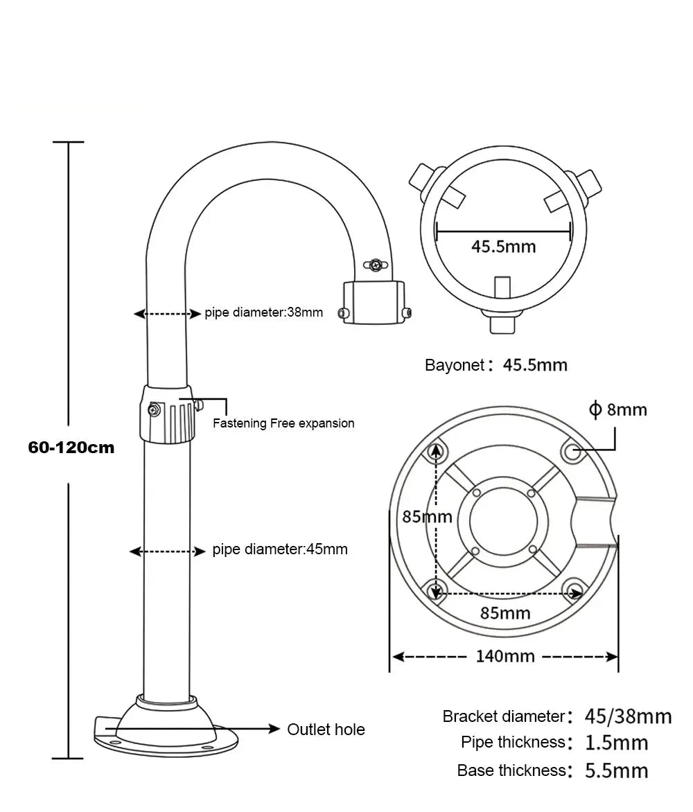 -Fabricado en aluminio, tubo de 45 mm de diámetro.