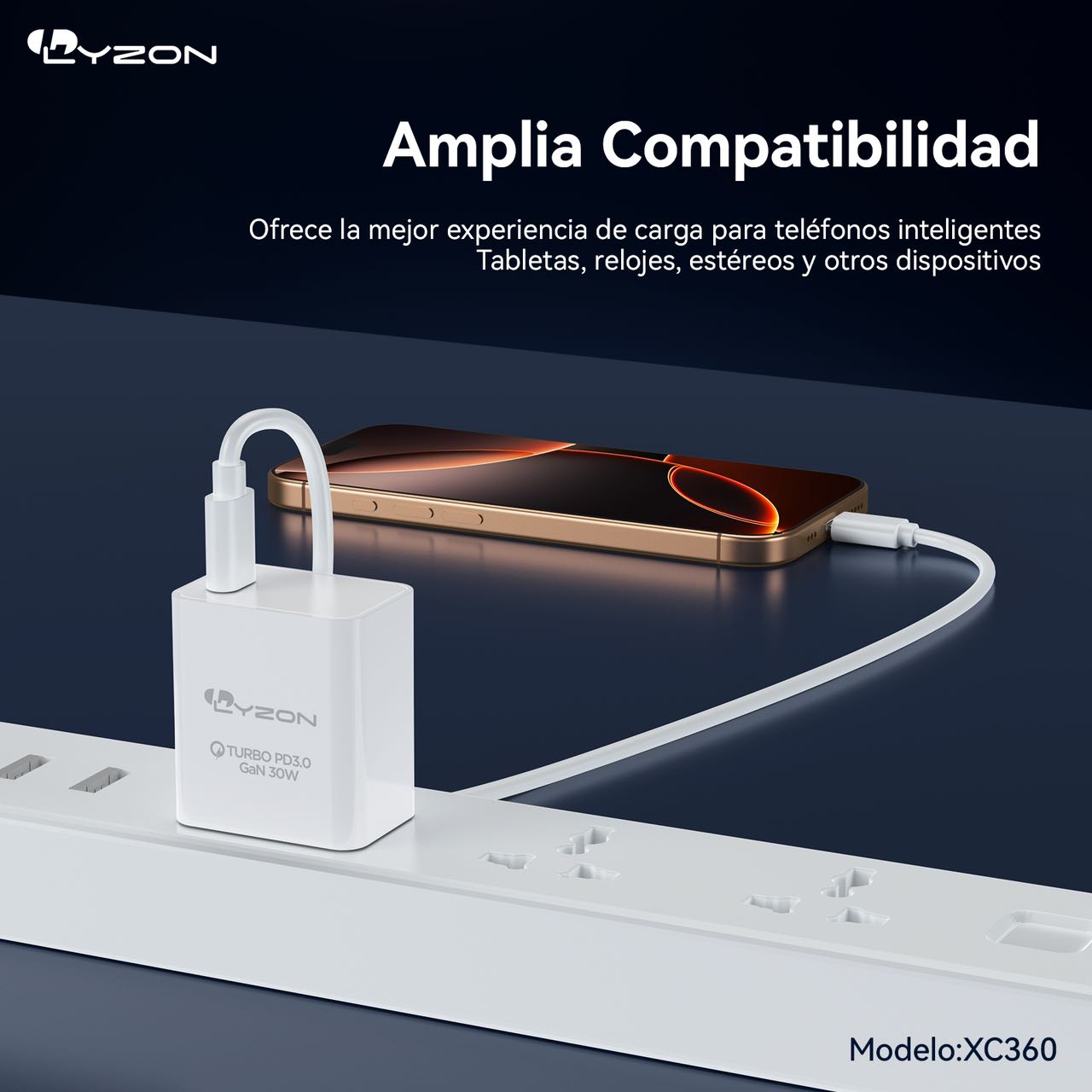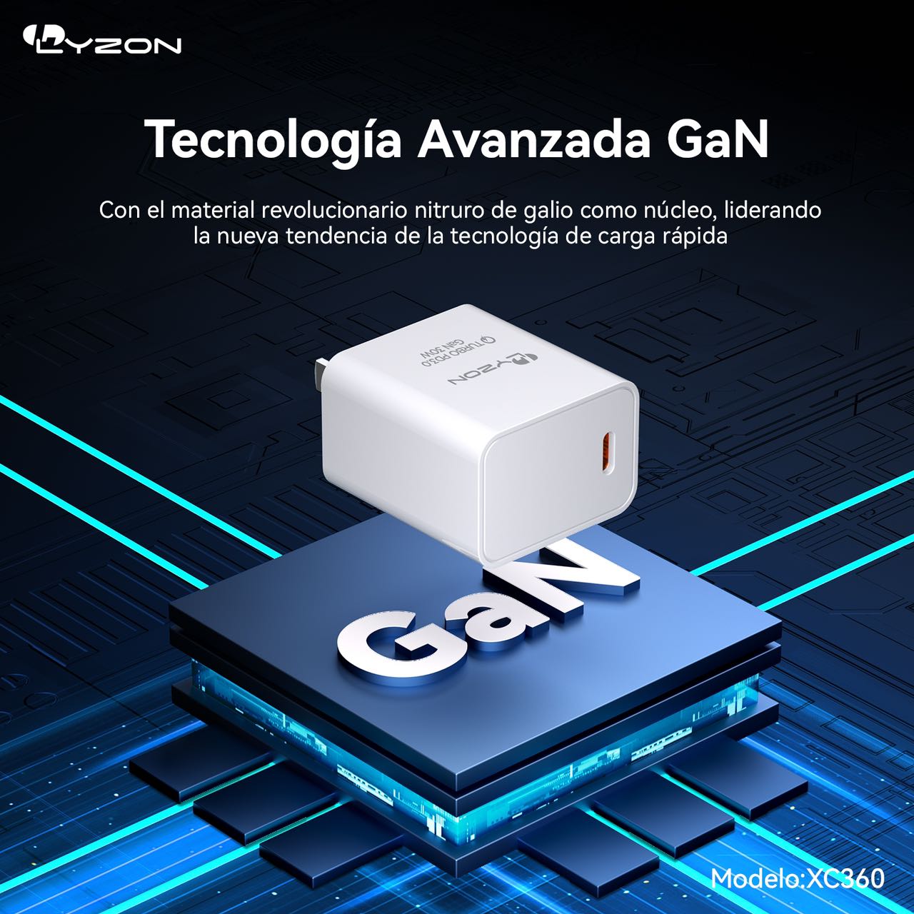El Cubo Lyzon Tipo c TURBO CARGADOR XC360 cuenta con una carcasa duradera y resistente al fuego y un modelo de carga USB-C PD30W. Además, está equipado con un chip de nitruro de galio para un rendimiento mejorado.