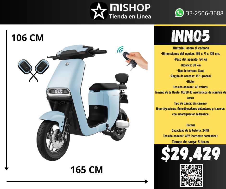 Si buscas una herramienta de movilidad sostenible y eficiente, la Moto Bicicleta Eléctrica INNO5 600w será la opción ideal para ti. Con la banda de rodadura adecuada y todas las prestaciones necesarias para una conducción cómoda y segura, esta moto será tu aliada en tus desplazamientos urbanos. ¡No esperes más para hacerte con ella!